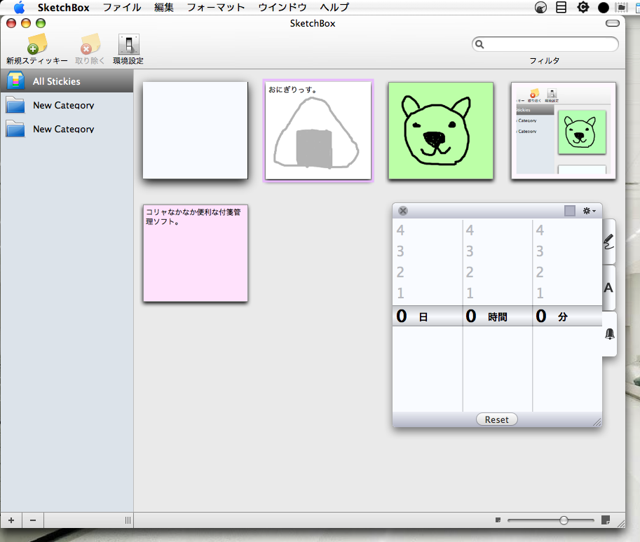 Macにはスティッキーズという便利なソフトが標準で入ってますが、もっと使い勝手の違うものを探していて、このソフトに辿り着きました。