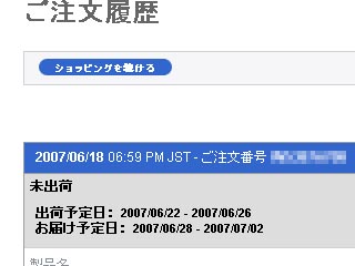注文日時: 2007/06/18 06:59 PM